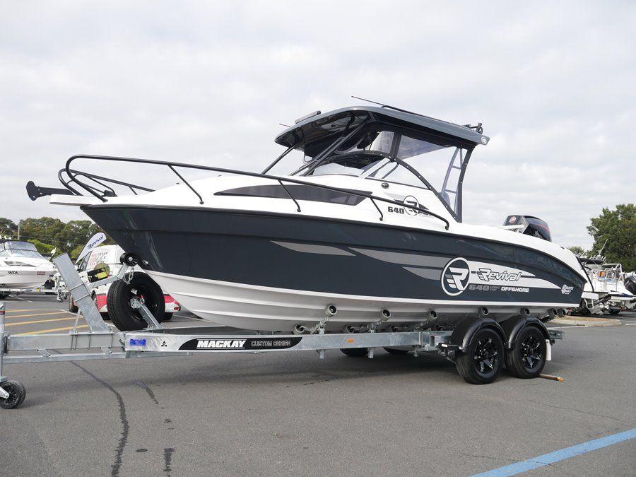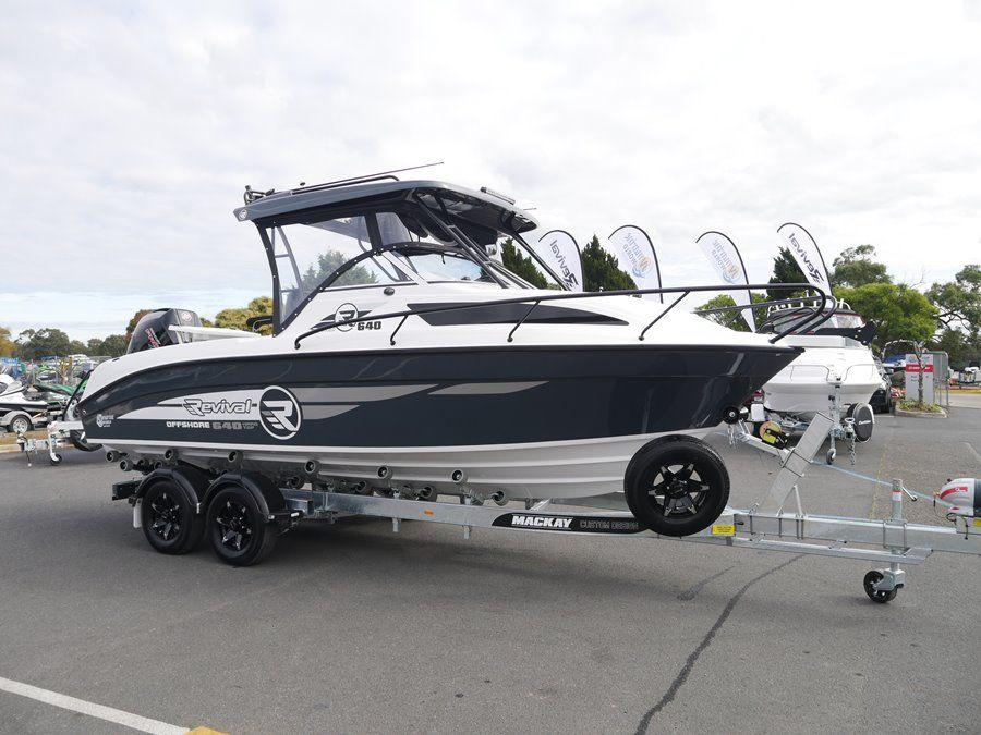 How good does this Revival 640 Offshore Hardtop look with the Gun Metal Grey Sides and Black powdercoated rails and fittings! Powered by a 4.3lt V8 ProXS Mercury 225hp 4-Stroke on the back!! Fantastic offshore fishing package built right here in Melbourne by master boat builder Sam Catanese. We’ve added a monster list of extra’s fitted to the boat to make it a serious offshore fishing machine. Everything from Electric Winch, Stereo, Live Bait Tank, Deck Wash, Eskies under Seats, Simrad NSS12 Evo3 Sounder/GPS and a whole lot more! See this boat on display now inside our giant undercover showroom in Braeside. We are Victoria’s only Revival boat dealer.