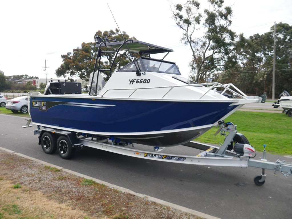 The largest in the Yellowfin Folding Hard Top range, the 6500 can be easily stored undercover thanks to its fold-down design, whilst boasting ample open deck space. Designed around the famed Offshore HD Hull, Yellowfin Plate Boats deliver a predictable, stable and dry ride in unruly conditions, ideal for bluewater fishing. Whilst the roomy cabin is perfect for weather protection and long-haul fishing trips.